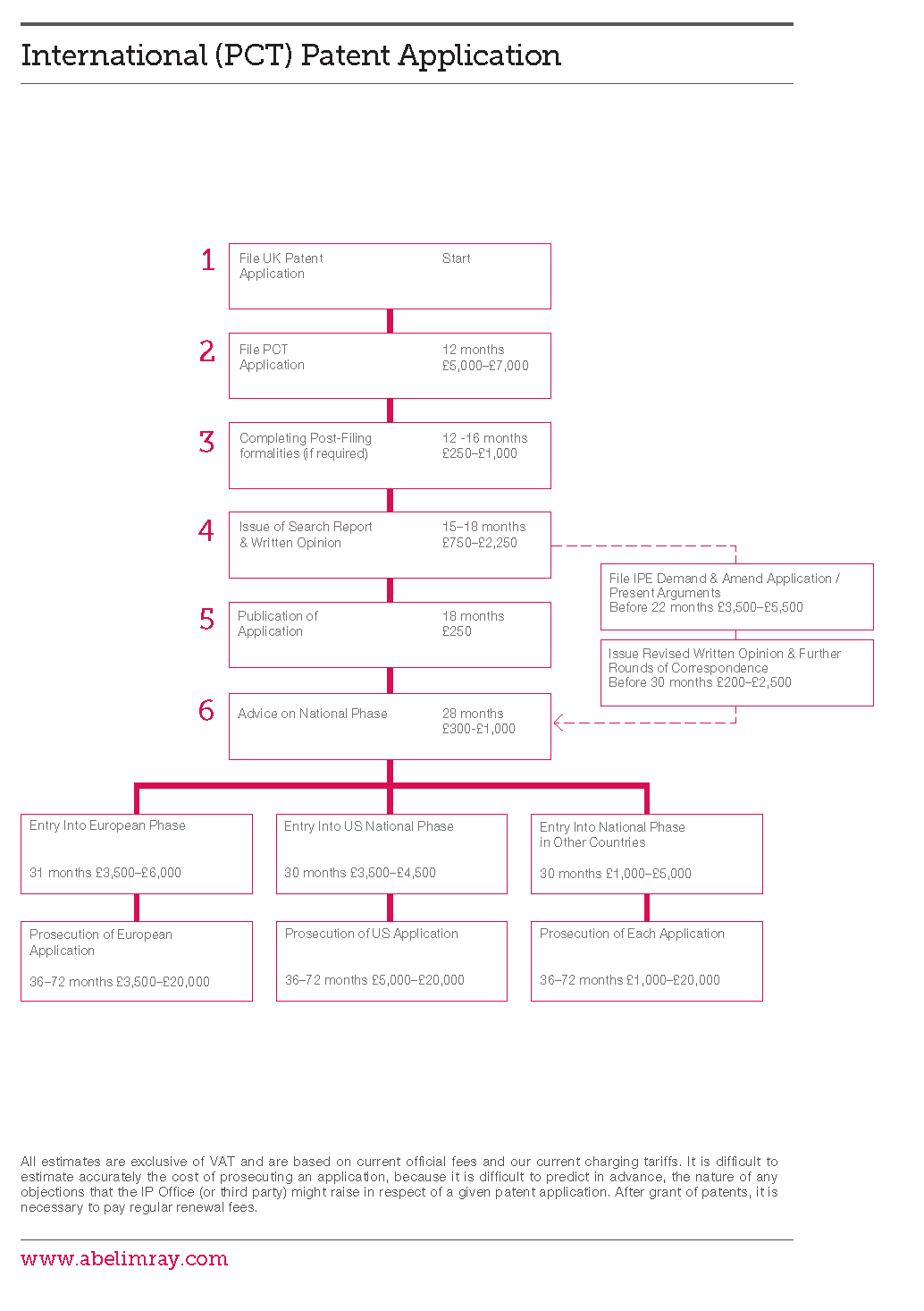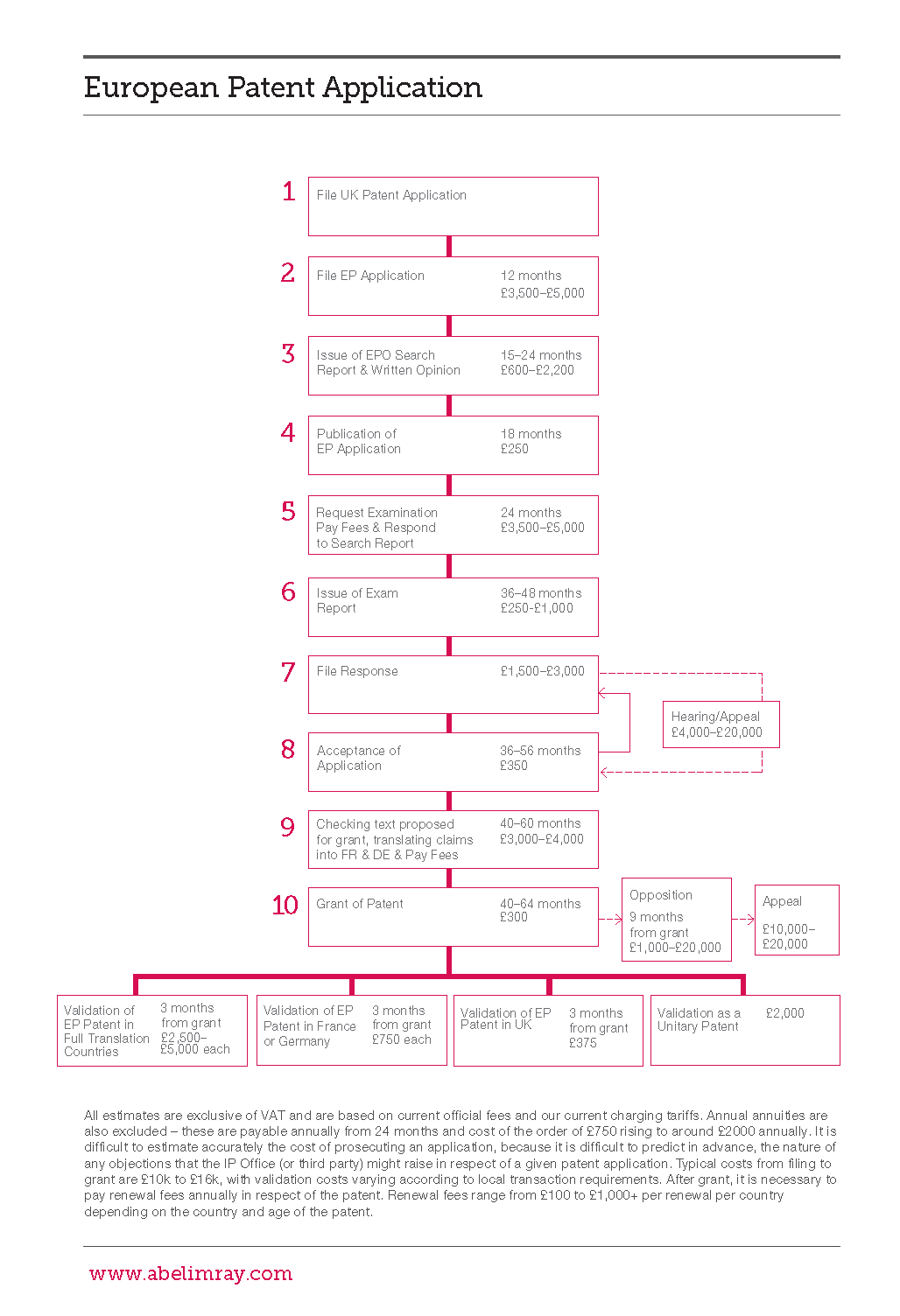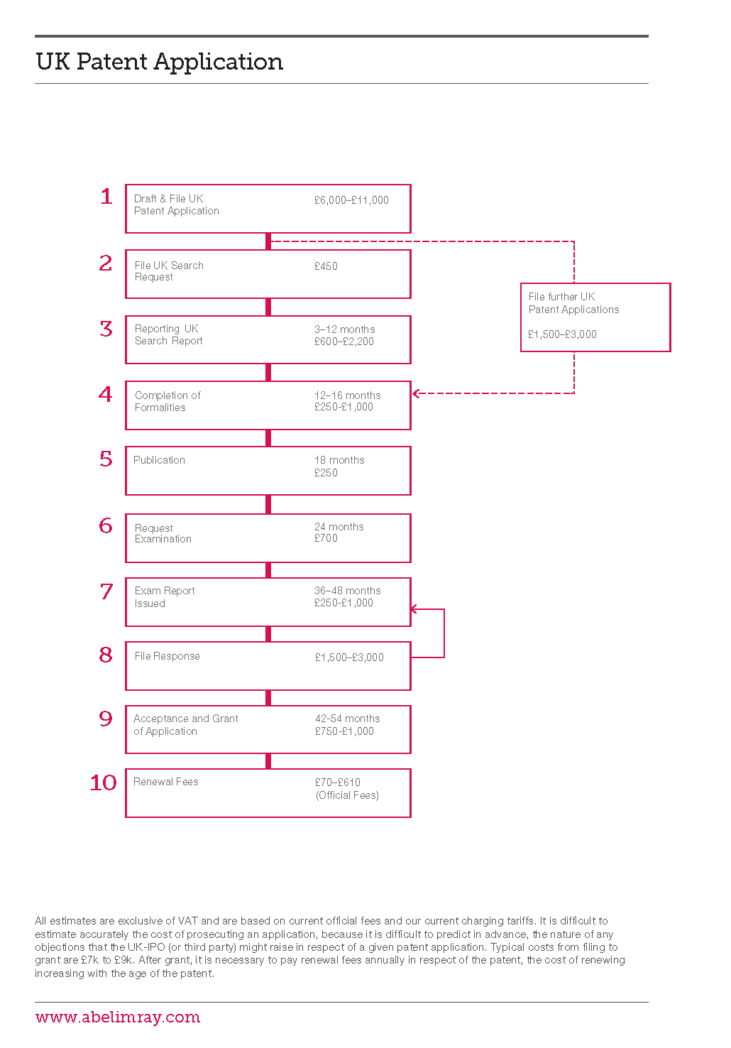 However, we do provide a number of flow charts setting out some typical costs of obtaining patent protection which can be viewed as a guide to the sort of figures and timescales involved. Also, prior to undertaking any action which will incur a significant charge, we will aim to provide an estimate beforehand, and seek confirmation we should proceed with the work.